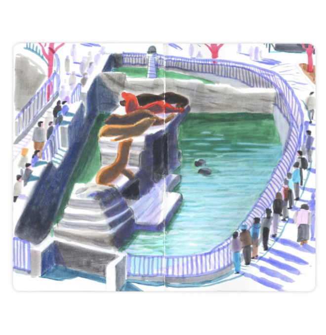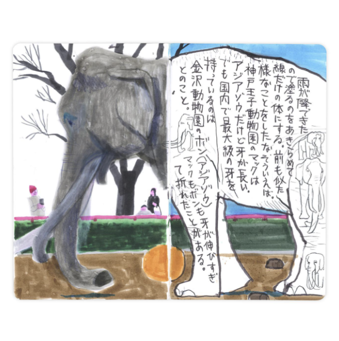 動物園で描いた70点のスケッチを収録。角丸、180度開く仕様。